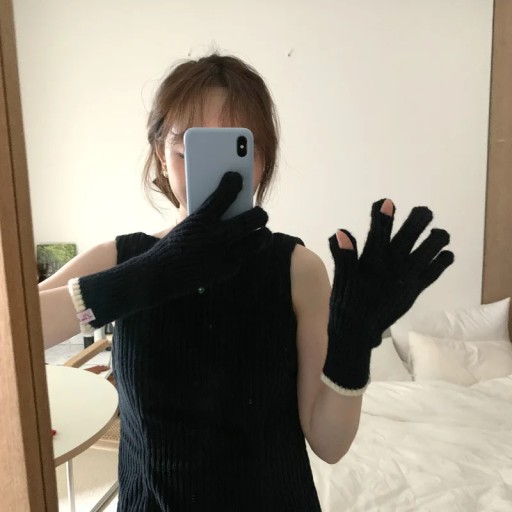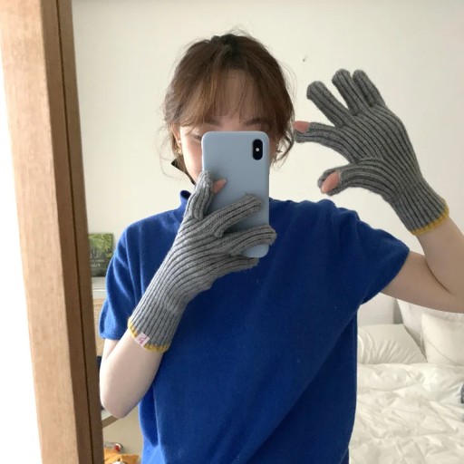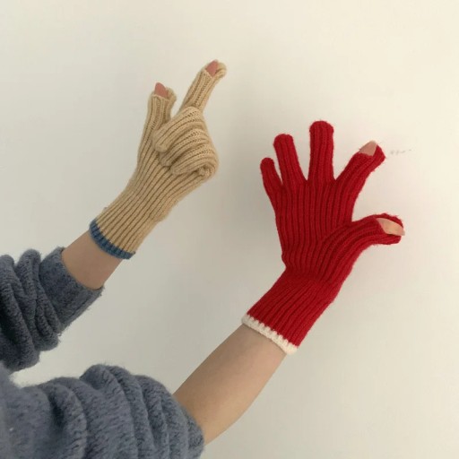 Чистый цвет вязаные волнистые перчатки женская зимняя экрана Студент езда на езде