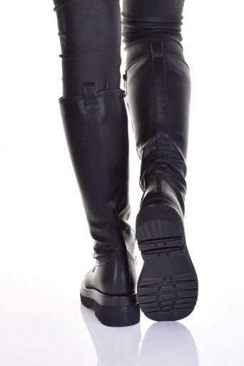 OCIEPLANE WYSOKIE KOZAKI DAMSKIE NA PLATFORMIE ZAMEK SKÓRZANE CZARNE