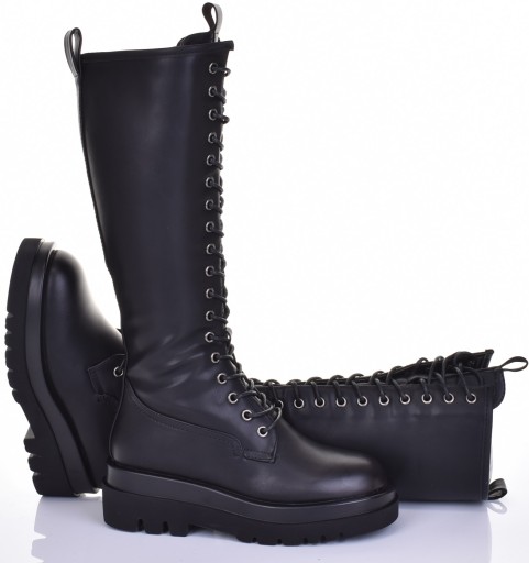 Buty od wewnętrznej strony cholewki posiadają zamek błyskawiczny oraz klasyczne sznurowanie przez całą wysokość cholewki.
