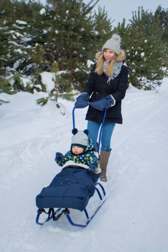 - prosty i niekłopotliwy demontaż oparcia i mamy sanki dla starszych dzieci. Oparcie jest wsuwane