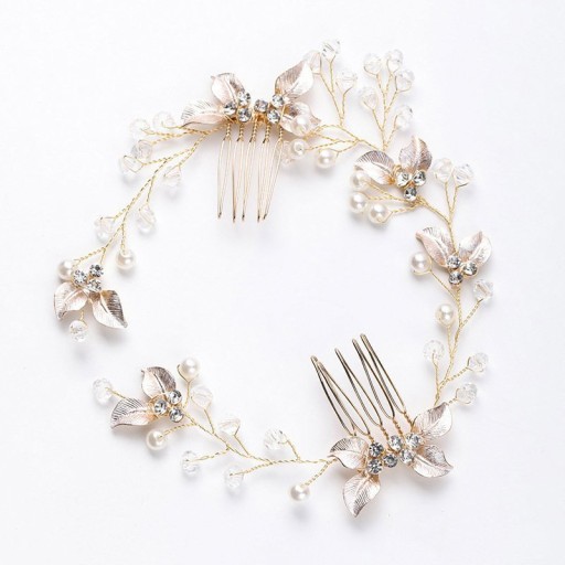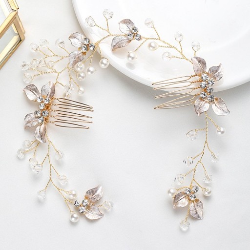 OZDOBA ŚLUBNA do włosów GRZEBYK złota PEREŁKI - 37424 Miss Glow
