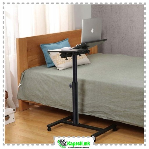 Wszechstronna regulacja pozwala dopasować stolik do każdej pożądanej, wygodnej pozycji przy laptopie. Aby zablokować kółka w stoliku wystarczy wcisnąć blokadę.