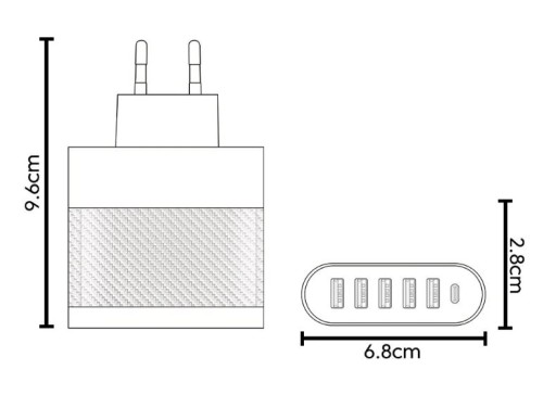 SZYBKA ŁADOWARKA SIECIOWA 65W QC3.0 USB 6 - PORTÓW 6 - ZABEZPIECZEŃ