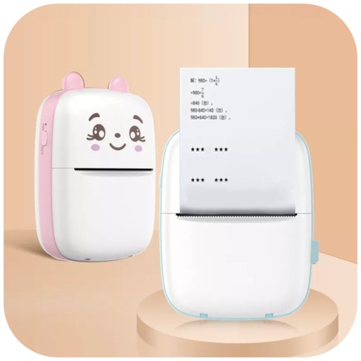 ❤️MINI DRUKARKA TERMICZNA PRZENOŚNA DLA DZIECI KOT DRUKUŚ + ROLKA 6 SZT
