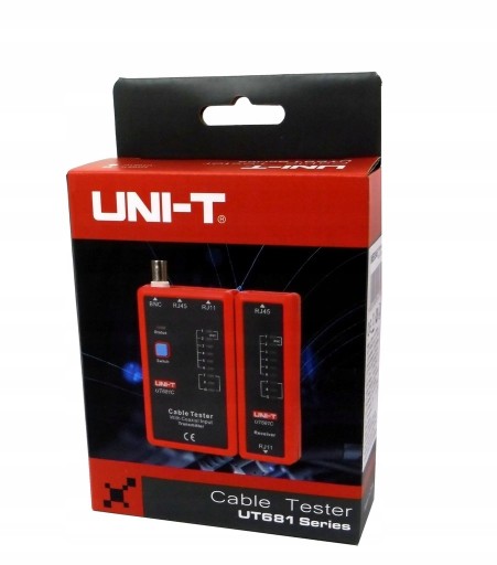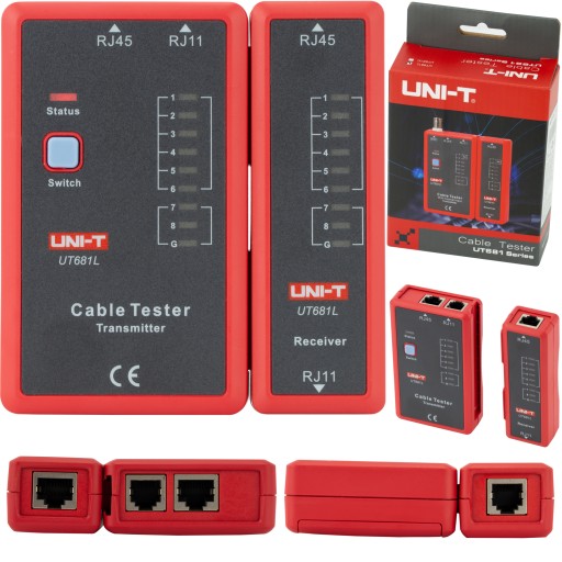 UT681L produkcji Unit to tester kabli i przewodów sieciowych zakończonych wtykami RJ11 RJ45. Tester okablowania sieciowego UT681L składa się z nadajnika i odbiornika. Wynik testu jest obrazowany przy pomocy 8 diod świecących LED. Test kabli i przewodów wykonywany na okoliczność powstania przerw, zwarć, przejścia w obwodzie elektrycznym.