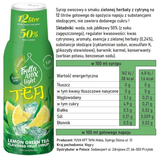 Syrop FruttaMax o smaku ICE TEA CYTRYNA 500 ml 25% owoców !