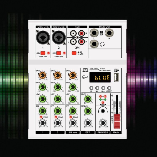 Студийный аудиомикшер, 4 канала, силовая реверберация, 48 В, аналоговый линейный микшер, белый