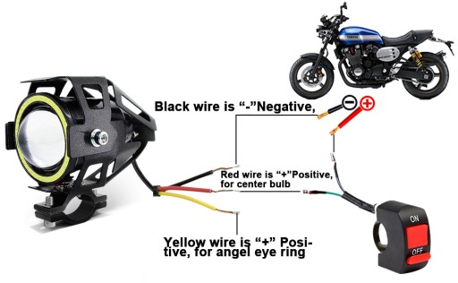 - Łatwy w instalacji, czerwona linia to „ ”, a czarna linia to „-”. Czerwony przewód jest podłączony do zielonego przewodu przełącznika (drugi przewód przełącznika jest podłączony do dodatniego bieguna pojazdu), czarny przewód jest podłączony do ujemnego bieguna pojazdu, a żółty przewód jest podłączony do ujemny biegun twojego pojazdu.