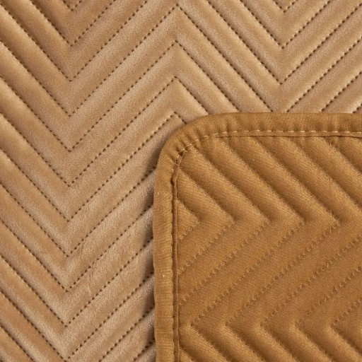 Ekskluzywna narzuta na łóżko SOFIA z miękkiego i przyjemnego w dotyku welwetu pikowanego w dużą, gęstą jodełką. Do pikowania wykorzystano metodę bezszwową hotpress.