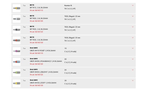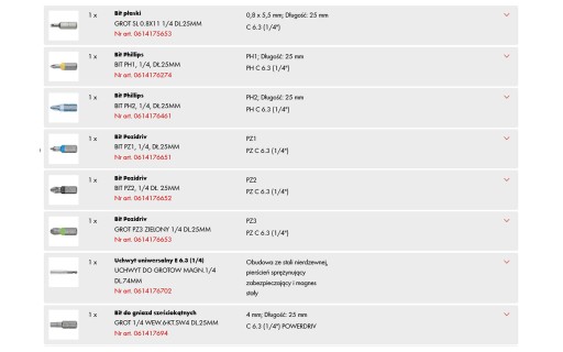 Praktyczny zestaw bitów zawierający wszystkie standardowe bity.
