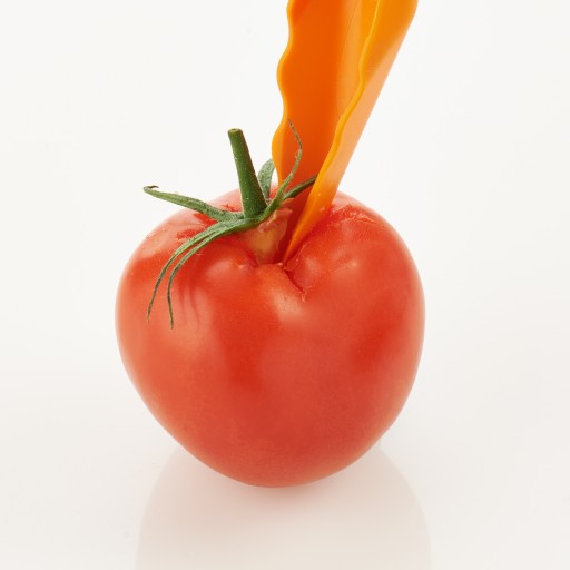 Po przeciwnej stronie oczka, znajduje się plastikowy nożyk, służący do nacinania skórek cytrusów, nie kalecząc ich przy tym. Umożliwia nam to łatwiejsze obranie owocu oraz daje możliwość wykonana kolejnej owocowej ozdoby.