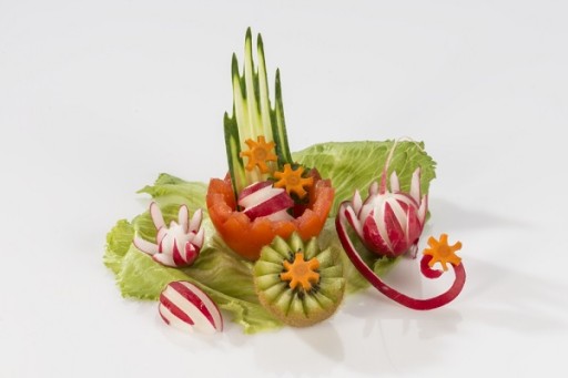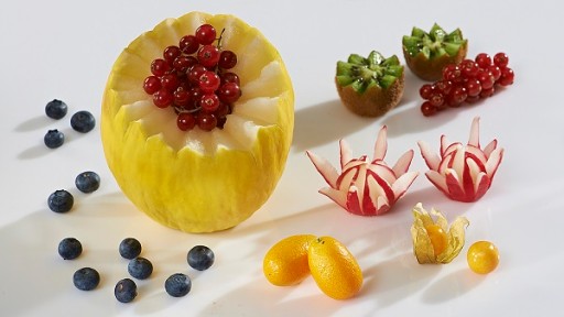 Dolne ostrze w kształcie litery V służy do przygotowywania wszelkiego rodzaju dekoracji z owoców i warzyw.