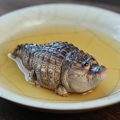 [Statua z ozdobą] Figurka krokodyla z ozdobną herbatą służy do dekoracji stołu i świetnie nadaje się do kolekcji osobistej.