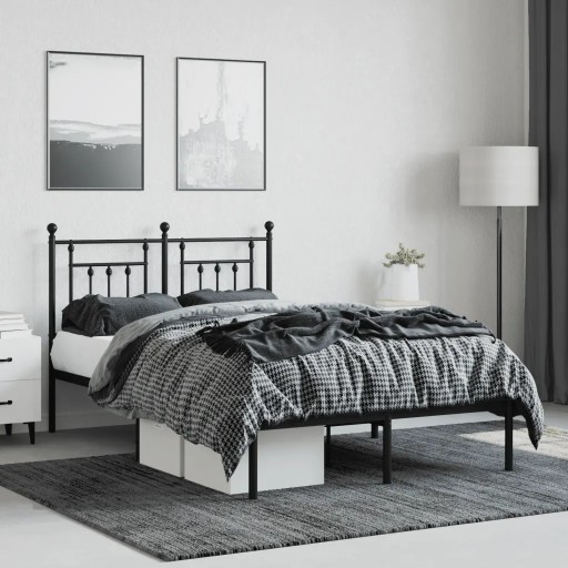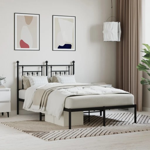 Metalowa rama łóżka z wezgłowiem, czarna, 120x190 cm Lumarko!