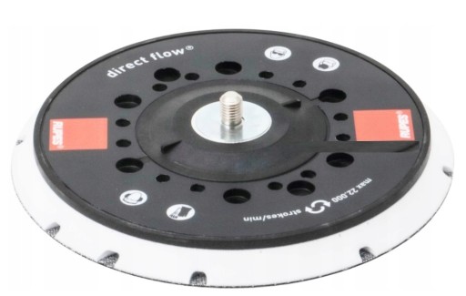 Wielootworowa twarda tarcza robocza 125mm z mocowaniem 5/16" zapewnia bardzo dobre odsysanie pyłu przy pracy z szeroką gamą papierów ściernych, nowa konstrukcja mocowania materiałów ściernych typu "rzep" daje pewne trzymanie papieru nawet przy bardzo wymagających pracach szlifierskich, zapewnia większą żywotność tarczy dzięki specjalnej budowie Direct Flow: wielootworowy wzór tarczy roboczej połączono z kanałami umieszczonymi na bocznej krawędzi co spowodowało imponujący przepływ powietrza zwiększający odsysanie pyłów zarówno na poziomych jak i pionowych powierzchniach, gwarantuje to lepsze oczyszczanie miejsca obróbki i tym samym lepsze warunki pracy, dwa z bocznych kanałów są połączone bezpośrednio do centralnego otworu i pełnią funkcję odprowadzania ciepła powstającego podczas obrotu tarczy roboczej, tarcza ta o grubości 12mm została stworzona dla osiągnięcia niższego środka ciężkości co przekłada się na lepszą kontrolę i precyzję pracy w trakcie całego procesu szlifowania, zoptymalizowane zbieranie pyłu szlifierskiego z krawędzi tarczy osiągnięto dzięki ukierunkowanemu przepływowi powietrza.