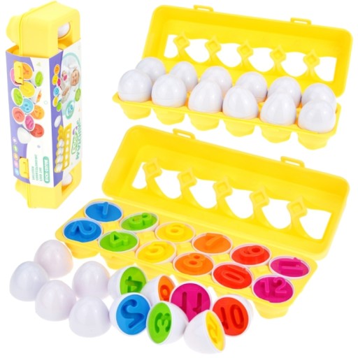 W zestawie znajduje się 12 jajek w z cyferkami od 1 do 12