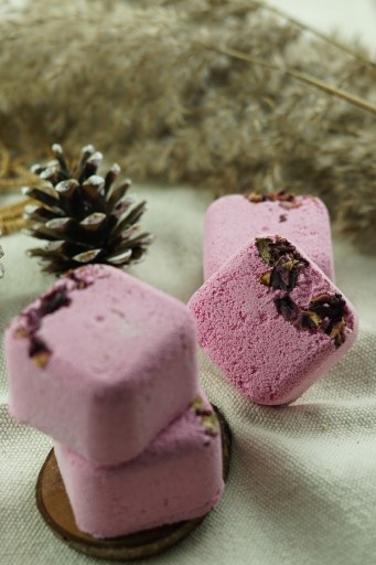 Pod wpływem wody kostka zacznie musować oraz uwalniać piękne zapachy olejków.