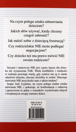 Jesper Juul wyjaśnia, na czym polega trudna sztuka mówienia NIE, i pokazuje, że konfrontacja z odmową i sprzeciwem to jeden z warunków wychowania silnych i świadomych swojej wartości dzieci.