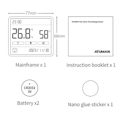 ПОГОДНАЯ СТАНЦИЯ ПОГОДНЫЙ ТЕРМОМЕТР ГИГРОМЕТР AtuMAN TH1 ДАТЧИК