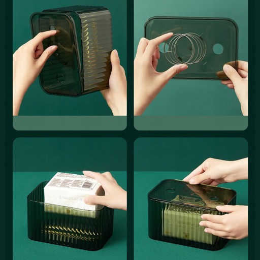 Prosta i wygodna instalacja: mały otwór na dole ułatwia otwieranie pudełka na chusteczki w celu wymiany chusteczek, odpowiednich do przechowywania większości rozmiarów chusteczek.