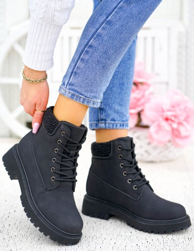 Czarne Buty Zimowe Trapery Ocieplane Botki Śniegowce Magic 38