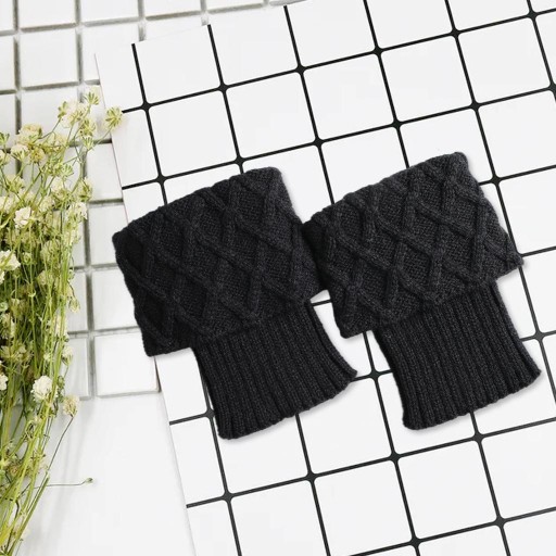 Szydełkowe Mankiety Do Butów Pończochy Szydełkowe Ocieplacze Z Dzianiny Akrylowej Dla Dziewczynek Czarne
