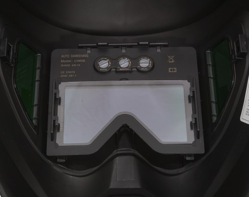 Specjalne czujniki umieszczone w kasecie filtrującej automatycznie identyfikują rozpoczęcie procesu spawania, uruchamiając funkcję samozaciemnienia. Po zakończeniu pracy filtr samoczynnie wraca do stanu rozjaśnienia. Filtr jest zasilany ogniwem słonecznym wspomaganym dwoma bateriami litowymi. Przyłbica o rozszerzonym polu widzenia, dzięki dwóm dodatkowym bocznym wizjerom.
