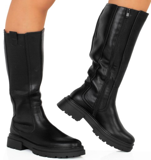 7801 CZARNE KOZAKI OFICERKI ELASTYCZNE OCIEPLANE 38