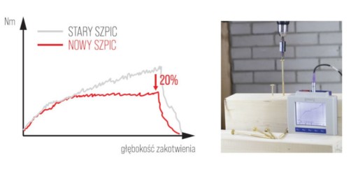 W badaniach prowadzonych przed wprowadzeniem produktu na rynek potwierdziliśmy, że nowy kształt końcówki wkręta powoduje skrócenie czasu wkręcania nawet aż o 40% przy tym samym obciążeniu. Wielkość oszczędności uzależniona jest od rodzaju połączenia i zastosowanego drewn