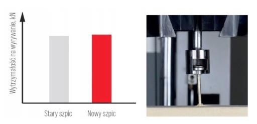 Zaprojektowany we współpracy z profesjonalistami nowy szpic wkrętów ciesielskich, to duże lepszy montaż oraz charakteryzuje się wysokimi parametrami wytrzymałościowymi takimi jak: wytrzymałość na wyrywanie, ścinanie itp