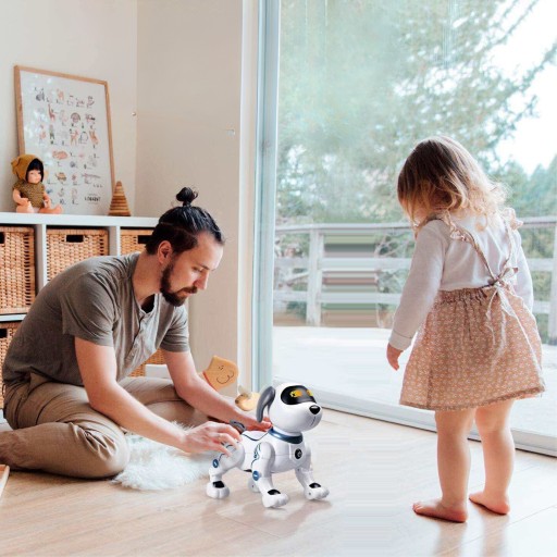 Robo piesek posiada zdolność do reagowania na dotyk i dźwięk. Może ruszać się , machać ogonem, szczekać i kiwać głową, a nawet tańczy! W odpowiedzi na interakcje dziecka. Dzieci mogą głaskać go, przytulać, a nawet nauczyć go kilku prostych sztuczek, co sprawia, że zabawa z nim staje się jeszcze bardziej zaangażowana i interaktywna.