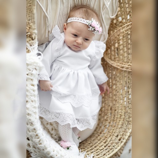 Sukienka na chrzest dla dziewczynki z długim rękawkiem biała Camila, r.74
