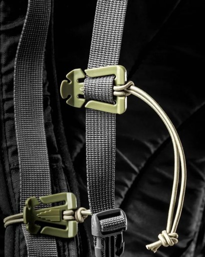 Bardzo praktyczne klamry z gumką do przytraczania różnych niezbędnych sprzętów jak np. latarka, krótkofalówka, rurka od camelbaka, kubek, czapka, kompas itd. na wyprawy do plecaków głównie z systemem Molle (ale nie tylko) czy szlufki spodni lub paska. Z nimi również w mig zapanujesz nad nadmiarem luźnych czy zbyt długich pasków przy plecaku. Dzięki naszym trokom oszczędzamy miejsce w plecaku czy torbie, a dodatkowo nasze ręce będą wolne.