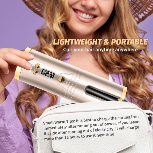 【Lekka i przenośna】 Bezprzewodowa automatyczna lokówka do włosów wystarczająco mała, aby łatwo zmieścić się w kieszeni lub plecaku. Przenośna bezprzewodowa lokówka jest ulubionym narzędziem do stylizacji w podróży. Zawiera klips do włosów i grzebień oraz kabel do ładowania USB. Wałki można wykonywać zawsze i wszędzie.