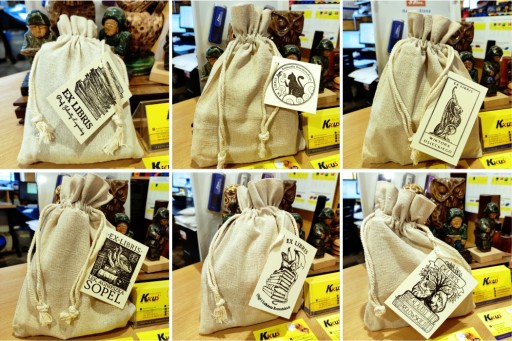 Pieczątka Ex libris 6x4 / 5x5cm - 127 Wzorów + GRAWER + lniany woreczek