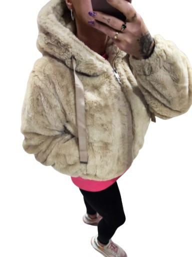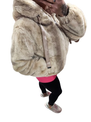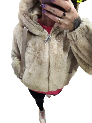 ЭЛЕГАНТНАЯ ЖЕНСКАЯ БЕЖЕВАЯ МЕХОВАЯ КУРТКА M
