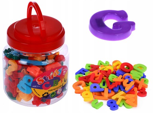Magnetyczne cyferki i literki zapakowane są w plastikowy poręczny słoik. Co pozwala na wygodne przechowywanie po skończonej zabawie.