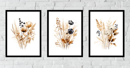NOWOCZESNY ZESTAW TRZECH OBRAZÓW W RAMKACH