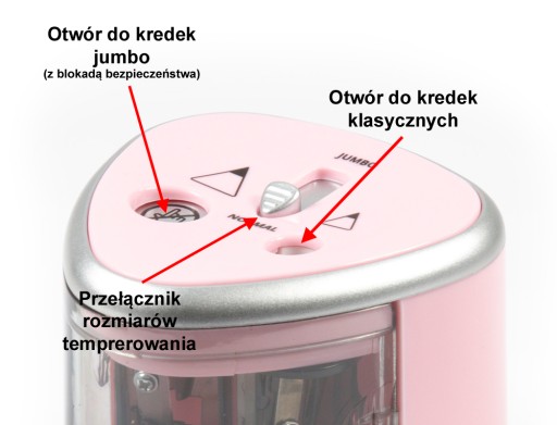 - możliwość ostrzenia zarówno kredek i ołówków klasycznych, jak i grubych jumbo