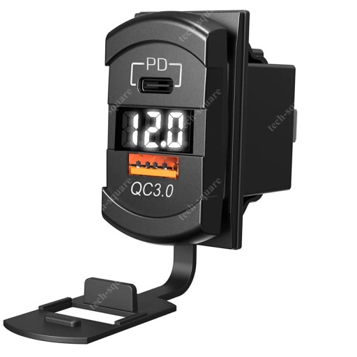 Монтажная розетка USB QC3.0 18 Вт + PD 36 Вт 12–24 В Вольтметр