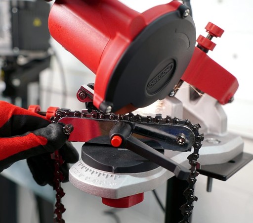 samodzielnie naostrz swoje łańcuchy do piły. Szlifierkę można łatwo przymocować do stołu warsztatowego za pomocą dwóch dołączonych sworzni, idealnie nadaje się do warsztatu lub garażu