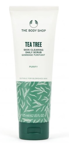 Przedmiotem sprzedaży jest oczyszczający peeling do twarzy Tea Tree Skin Clearing Daily Scrub marki THE BODY SHOP o pojemności 125 ml.