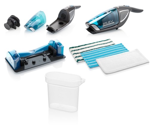 Odkurzacz pionowy z akumulatorem 25,2 V, zapewnia do 60 minut pracy po jednym naładowaniu a systemem odkurzania cyklonowego zwiększa jego efektywność.
