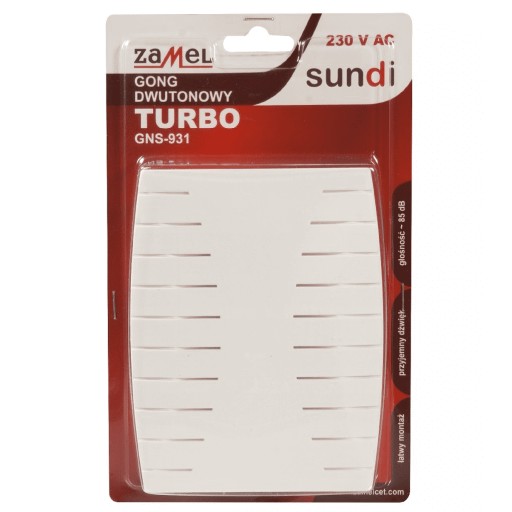 Dzwonek gong do drzwi dwutonowy biały 230 V Zamel Sundi Turbo GNS-931 SUN10000124 jest bardzo dobrze zapakowany, więc nie ulegnie uszkodzeniu podczas transportu.