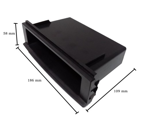 Kaseta ta, to czarny plastikowy schowek w standardowym rozmiarze 1DIN maskujący otwór po zdemontowaniu radia w wielu autach ze standardową wnęką montażową 2DIN.