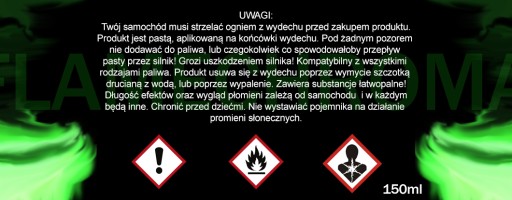 - Pasta ta nie powoduje powstania ognia w wydechu, jedynie zmienia jego barwę.