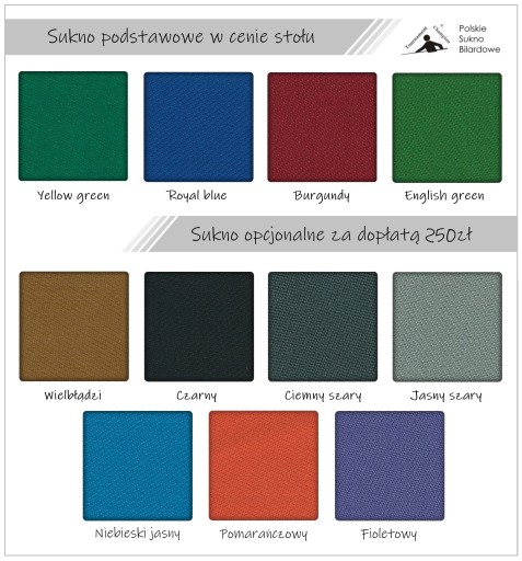 Podstawowa kolorystyka sukna: