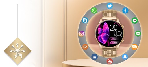 - Dzięki wbudowanym głośnikom oraz mikrofonie w smartwatchu wykonywanie i odbieranie połączeń telefonicznych możliwe jest bezpośrednio z poziomu zegarka dzięki czemu nie przegapisz już ważnego połaczenia i z łatwością odbierzesz je z poziomu zegarka