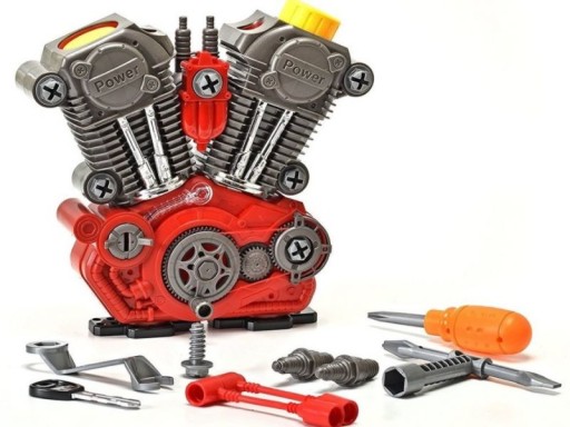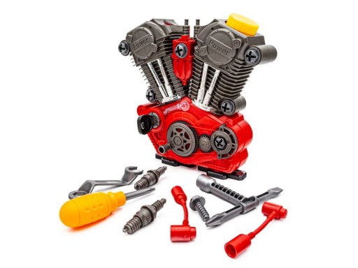Zabawka ta z pewnością wywoła uśmiech na twarzy każdego chłopca i zapewni mu wiele godzin wspaniałej zabawy. Poszczególne elementy silnika można rozkręcać i skręcać bez końca a realistyczny dźwięk pracy silnika, efekty świetlne oraz ruchome elementy takie jak pracujące tłoki silnika czy obracający się pasek klinowy z pewnością uatrakcyjnią zabawę.