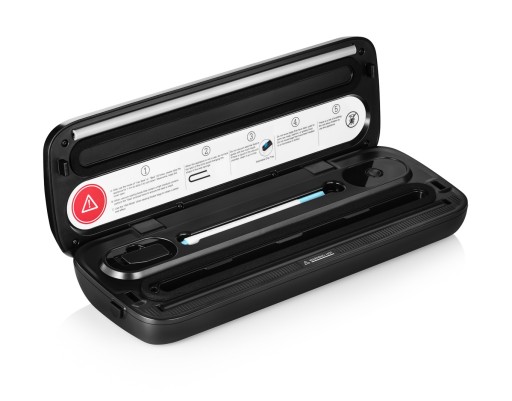 Zgrzewarka pomaga utrzymać porządek w kuchni i w lodówce. Mamy możliwość pakowania żywności niezależnie od tego, czy jest w formie stałej, czy płynnej i to za jednym dotknięciem przycisku. Umieść po prostu żywność w folii, umieść otwartą część opakowania w urządzeniu, wciśnij pokrywę i wybierz pożądany sposób zapakowania naciskając odpowiedni przycisk.